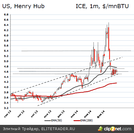 • Некоторую поддержку котировкам газа может оказать кризис на Украине, поскольку накал геополитической обстановки в регионе угрожает срывом возможности расширения добычи в Крыму, а также создает вероятность срыва поставок со стороны России в случае обострения противостояния с Западом