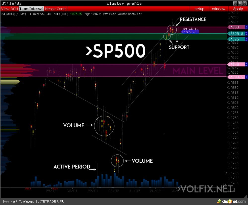 Обратит внимание на то, какой плотный диапазон с крупными объемами, прошел на максимуме пару дней назад. И все эти сделки заключили ближе к уровню сопротивления технического анализа. Такие моменты можно легко комбинировать. ТА и объемный анализ очень тесно связаны между собой.