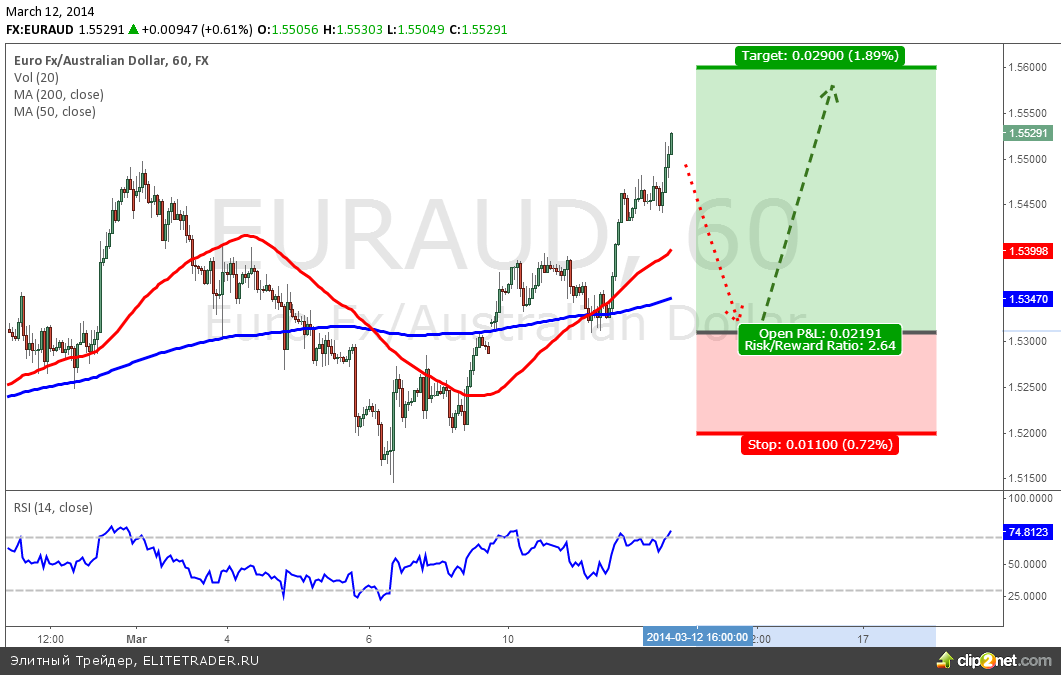 Валютная пара EUR/AUD, часовой график