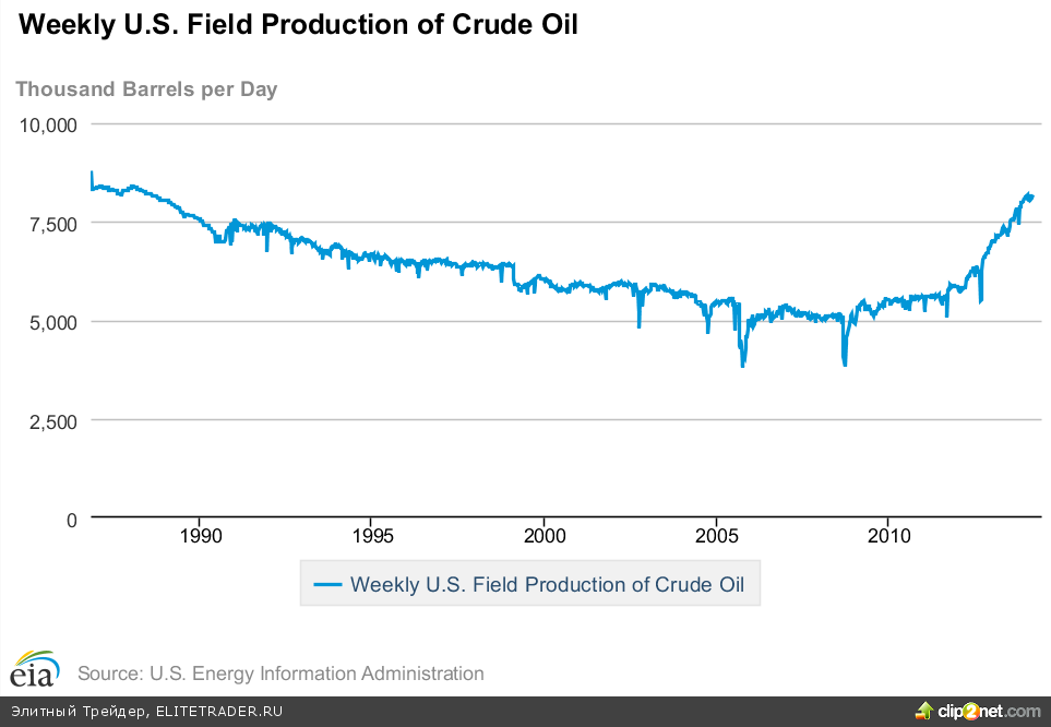 Кроме того на фоне растущей добычи на месторождениях сланцевой нефти внутреннее производство в стране достигло максимума с конца восьмидесятых годов. Согласно полученным данным, добыча в США составляет 8,182 млн. баррелей в день.