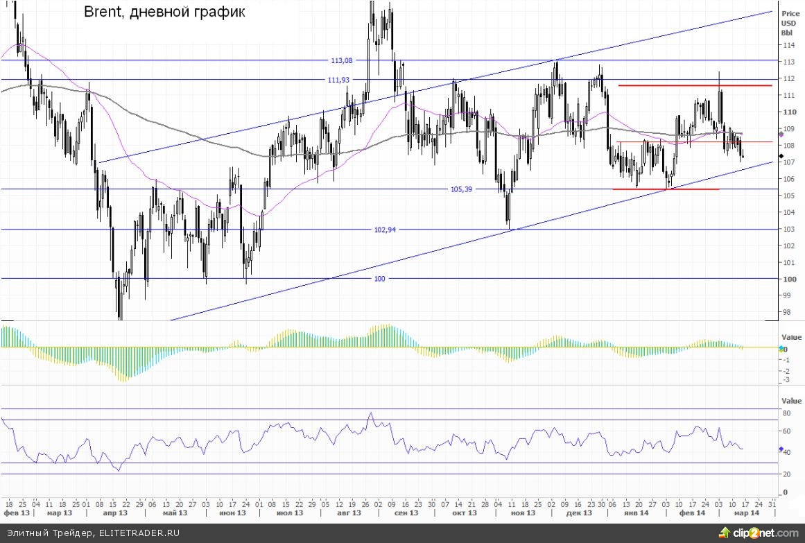 Сдерживающим фактором все также выступает ситуация вокруг Украины. Риск перехода конфликта в фазу вооруженного противостояния закладывает в цену дополнительную премию. Россия является крупнейшим нефтедобытчиком в мире, так что любые военные действия или же ограничения нефтяного экспорта сразу же вызовут импульсный рост на рынке черного золота. На мой взгляд, реализация самого негативного сценария достаточно низкая.