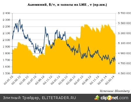 2013 год был довольно сложным для производителей алюминия, и итоги его вряд ли можно будет оценить однозначно. Цены на алюминий на мировом рынке оставались под давлением весь год, планомерно снижаясь на LME и достигнув уровня в $1750 за тонну на конец года, обновив минимумы 2010 года и опустившись на кризисный уровень 2009 года. Однако параллельно усугублялась оторванность цен на LME от реального поставочного рынка алюминия, и, вместе с тем, как цены на бирже обновляли многолетние минимумы, премии производителей к LME обновляли исторические максимумы, превысив отметку в $300 на конец 2013 года, и показав еще более высокие значения в начале 2014 года. Фактически, реальная цена на алюминий для производителей колебалась в районе $2000 за тонну, что в целом соответствует уровню безубыточности мировой алюминиевой отрасли.