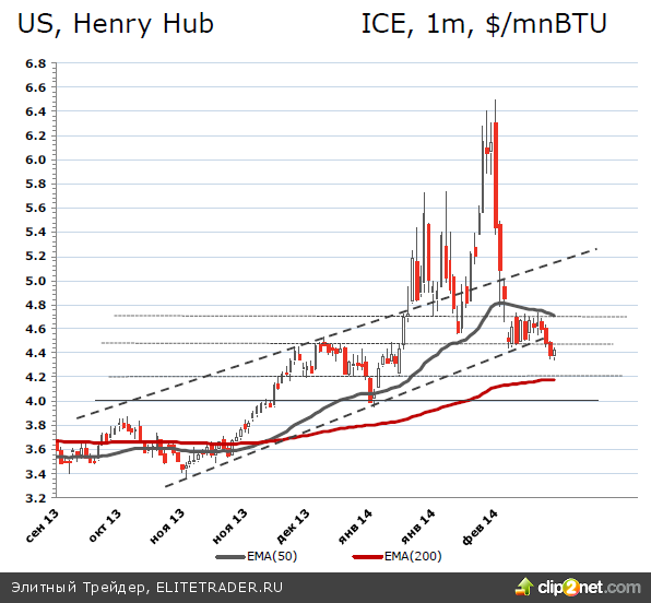 • Поддержку газу на Henry Hub отчасти может оказать украинский кризис, однако Европу в краткосрочной перспективе вряд ли выручит американский газ, вследствие чего влияние противостояния Запада и России на котировки газа HH будет ограниченным