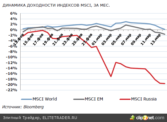 Впрочем, почти неизбежно обострение геополитических трений в момент законодательного принятия Крыма в состав России. Кроме того, остается риск эскалации ситуации на остальной территории Украины, более существенных западных санкций и российского ответа на них. Так что пока мы полагаем, что рост российского рынка вечером в пятницу и в понедельник – это только отскок, и по крайней мере еще один тест отметки 1200 пунктов по индексу ММВБ мы увидим