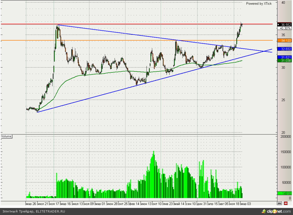 В частности сегодня Путин распорядился одобрить проект договора о принятии Крыма в состав РФ, что может повлечь за собой дополнительные санкции со стороны Запада. Между тем нефтяные котировки в последние несколько дней также не радуют своей динамикой. В частности «черное золото» сорта Brent торгуется уже ниже 107 долларов за баррель в ожидании полной отмены санкций для Ирана. В свою очередь рубль от дальнейшего ослабления удерживает Банк России, который только за 14 марта продал иностранной валюты на 4,5 млрд долларов. Данные действия ЦБ говорят о том, что выше 37 данной валютной паре уйти будет крайне трудно. Поэтому продолжение коррекции в район 35,8 вполне вероятно, особенно учитывая начало налогового периода в стране.