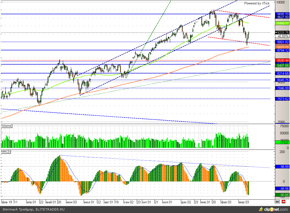 Тем временем Dax сейчас находится в нисходящем канале и зажат между сильными уровнями 9000 и 9300. Пробой любого из данных значений может привести к новому сильному движению, но да этих пор сигнал нейтральный.