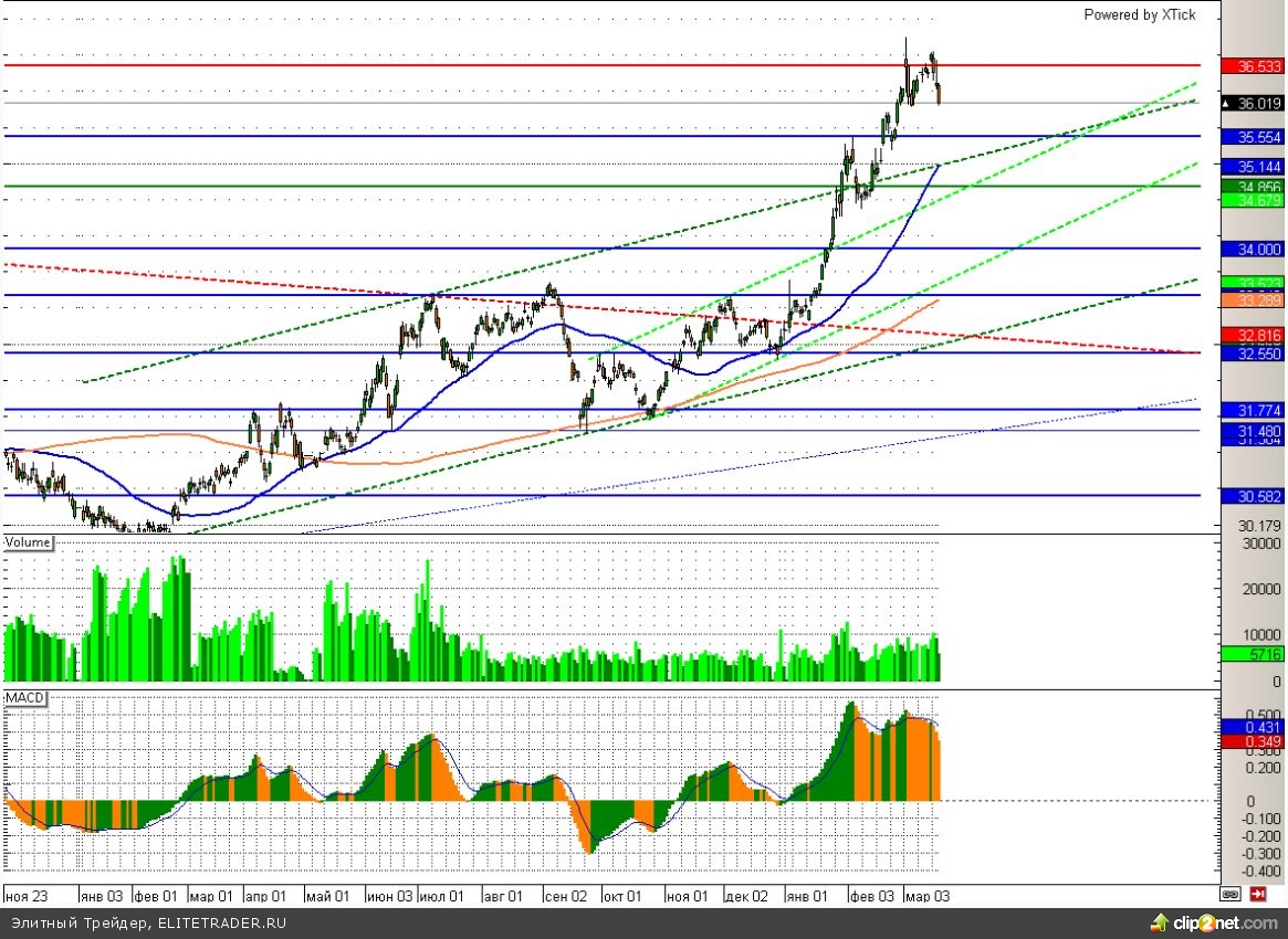 Решение о присоединении Крыма рубль воспринял позитивно, и случилось это прежде всего потому, что с данным событием были связаны ожидания жестких санкций для России, которых пока не последовало. При этом дополнительную поддержку российской валюте оказывает начало налогового периода в стране, а также не прекращающиеся интервенции со стороны ЦБ. На этом фоне данная валютная пара ожидаемо скорректировалась и уже добралась до первой поддержки в районе 35,8 – 36. Здесь покупатели американской валюты могут вновь попытаться перехватить инициативу. Станет ли успешной данная попытка или нет во многом будет зависеть от итогов заседания ФРС и публикации экономических прогнозов Комитета по открытым рынкам. Эти события произойдут сегодня уже 22.00 по мск. В случае пробоя парой отметки 35,8 можно будет рассчитывать на реализацию модели «двойная вершина» и укрепления рубля в район 35,4. При этом ближайшей целью в обратной ситуации станет отметка 36,3.