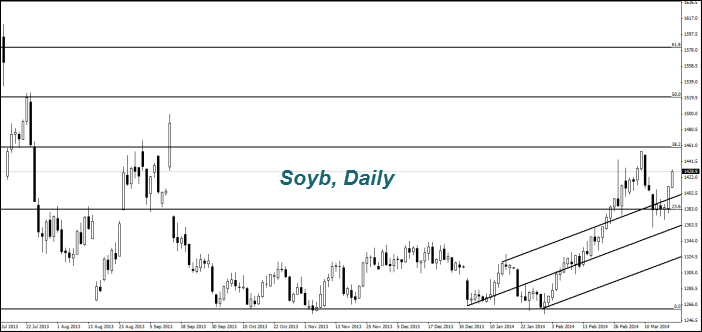 Соя (Soyb) и пшеница (Wheat) подорожали после сообщения Министерства сельского хозяйства США (USDA). Объём обязательств по экспорту американской сои на 6 марта достиг 106% от прогнозного уровня на урожай этого года и на 91% превысил средний объём за последние пять лет. Рост цен на пшеницу был обусловлен снижением прогнозов урожая зимних сортов в США в этом году из-за плохой погоды. Кроме этого Египет объявил международный тендер на покупку дополнительных 175 тыс. тонн пшеницы, Япония — на 118,8 тыс. тонн. Стоимость кукурузы (Corn) повысилась после сообщения Китая о возобновлении условий сделки с Украиной по покупке зерна, заключённой в 2012 году. Фактически, Китай может приобрести весь экспортный объём украинской кукурузы на этот год. Так как ранее он отказался от покупки 900 тыс. тонн американского генномодифицированного зерна. Мы ожидаем увеличения волатильности сельскохозяйственных фьючерсов. Участники рынка будут делать различные прогнозы и предположения перед выходом 31 марта квартального отчёта USDA. Фактические данные могут заметно повлиять на котировки.