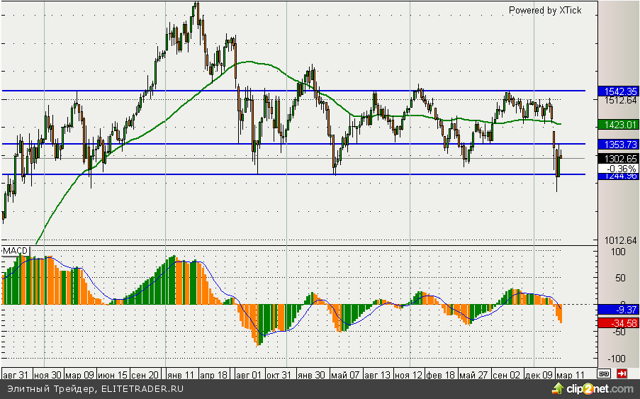 Таким образом, сейчас не лучший момент для покупок российских активов. Поэтому некоторое время желательно побыть в стороне от рынка и дождаться новых позитивных драйверов. В свою очередь если ММВБ уйдет ниже 1250, то рынок уже окончательно войдет в «медвежью» фазу, в которой задумывать о покупках еще долгое время не придется.