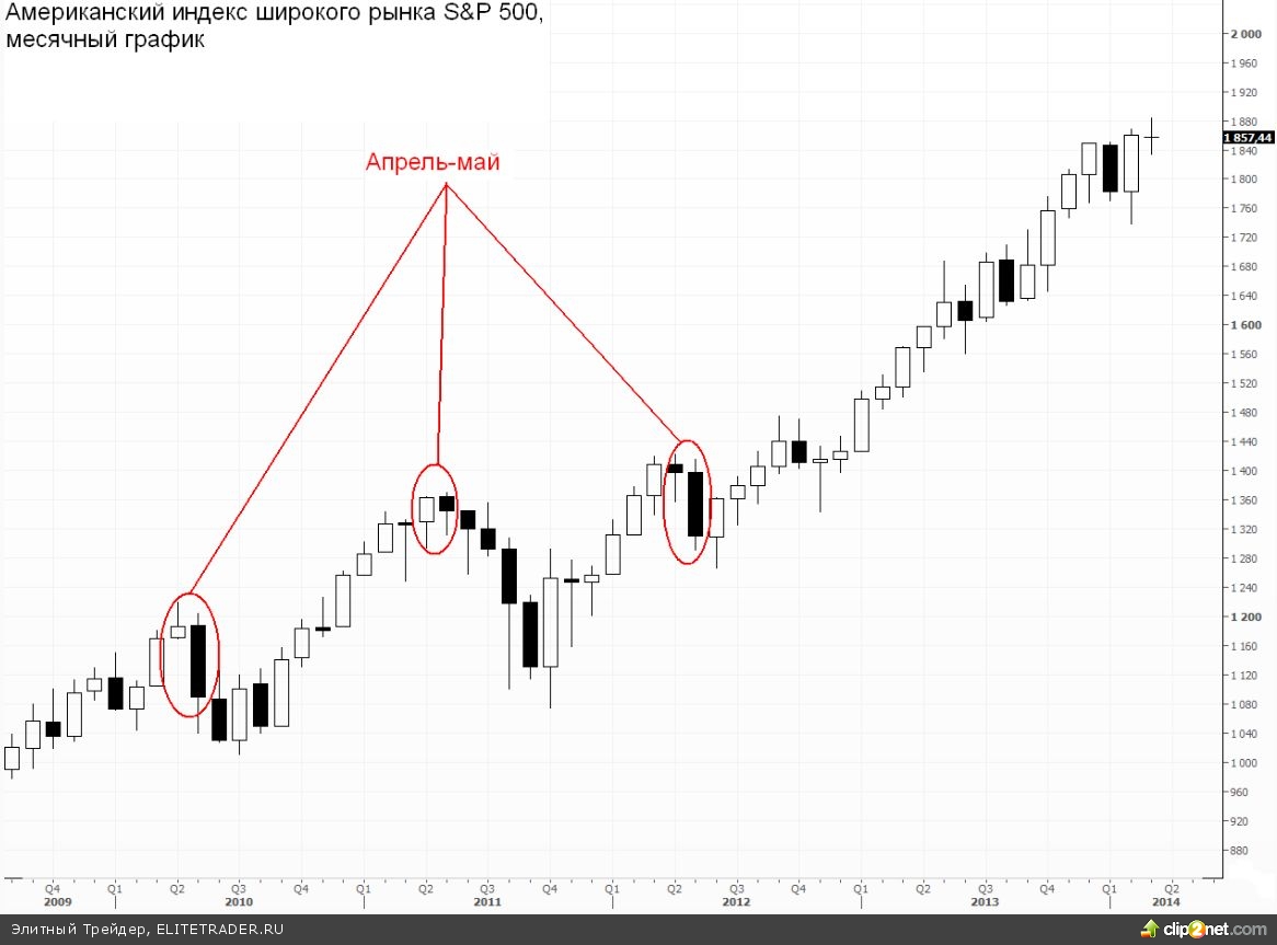 Индекс широкого рынка еще имеет некоторые шансы на рост вплоть до целевых отметок 1905-1910, однако на этом бычий тренд наверняка завершится. Если не брать в расчет прошлый аномальный год непрерывного роста, то как раз именно в апреле-мае мы часто наблюдали за сломом растущей тенденции.