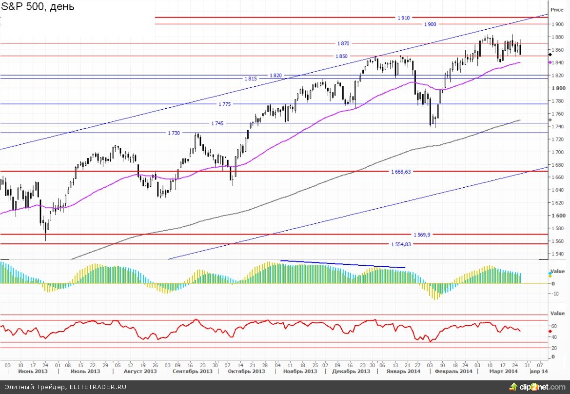 В среду американский рынок акций немного просел. Индекс SnP 500 вплотную подошел к нижней границе локального бокового коридора (1850). В случае продолжения снижения, что на мой взгляд очень вероятно, количество продавцов будет только лишь увеличиваться, и мы снова начнем говорить о потенциале долгожданной большой коррекции.