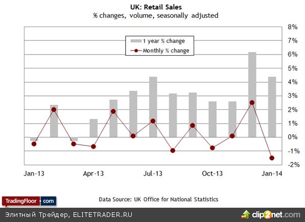 Розничные продажи в Великобритании (09.30 GMT): Увеличение расходов играло важную роль в восстановлении британской экономики. В этом нет ничего удивительного, хотя некоторые аналитики полагают, что это ведет к нездоровому восстановлению и формированию зависимости от потребления. Деловые инвестиции, активность в секторе обрабатывающей промышленности и экспорт выглядят далеко не так оптимистично. Тем не менее, высокие показатели расходов домохозяйств по-прежнему дают нам повод для оптимизма. В идеальном мире британская экономика опиралась бы на сбалансированный набор факторов. На самом деле, сейчас предпринимаются действия для достижения такого баланса. Но сейчас экономике требуется значительная доля потребления, чтобы поддержать позитивный макроэкономический тренд.