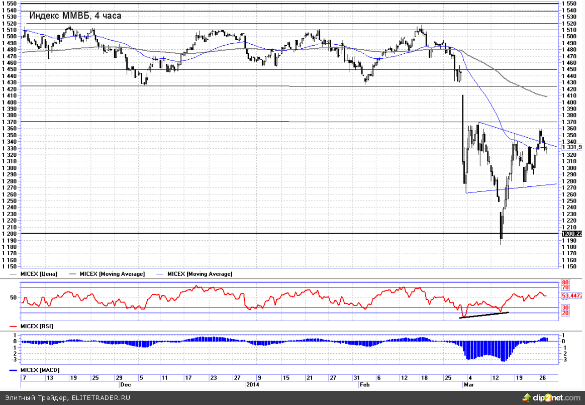 Сегодня на ход торгов на российском рынке акций может повлиять очередное выступление Виктора Януковича. В СМИ появилась информация, что в Ростове-на-Дону пройдет пресс-конференция бывшего (или действующего?) президента Украины. Предсказать сценарий развития ситуации крайне сложно, так что инвесторам и спекулянтам я бы предложил самим в прямом эфире следить за этим выступлением (если оно конечно вообще состоится, ведь по данным Кремля ни о какой запланированной речи Януковича им неизвестно), так как реакция рынка в случае чего-то «нового» будет мгновенной. Точное время выступления пока неизвестно.
