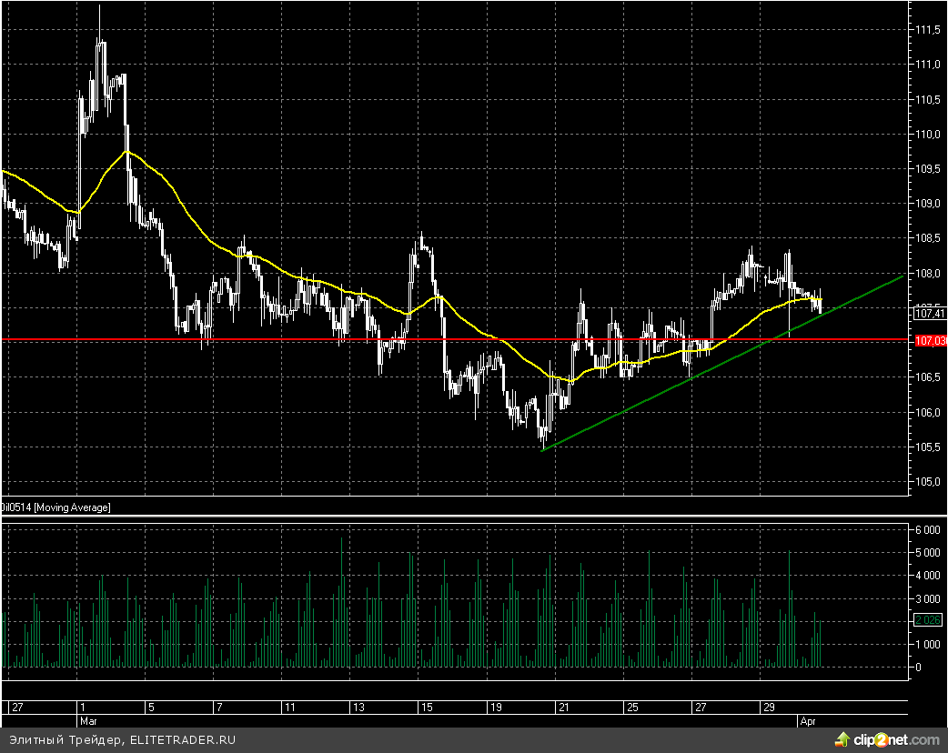 В свою очередь нефть сорта Brent в последнее время не очень радует инвесторов своей динамикой. Сегодня «черное золото» торгуется ниже 108 долларов за баррель и вплотную подошло к восходящей трендовой линии. От данной отметки вполне вероятен небольшой отскок вверх, хотя и пробой вниз полностью исключать также не стоит.