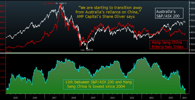 Девятилетняя связь между австралийскими и китайскими акциями разорвана.