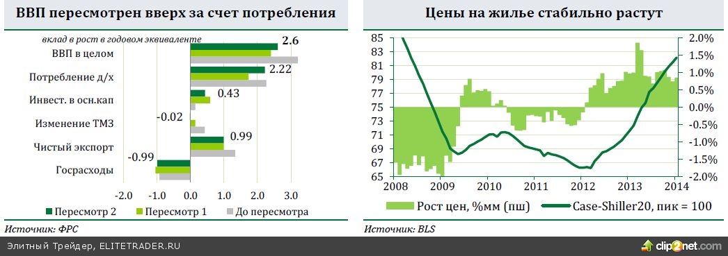 Финальная оценка роста ВВП в 4 квартале зафиксировала его на уровне 0,65%кк и 2,6%гг (предыдущая оцека - 0,59 и 2,5%). Рост был пересмотрен вверх за счет компоненты частного потребления, а именно потребления домохозяйствами услуг. Параллельно вклад инвестиций был пересмотрен в негатив. В целом это - положительная новость, поскольку отставание роста частного потребления от других компонент в 2013 году бросалось в глаза и вызывало вопросы и недоверие.