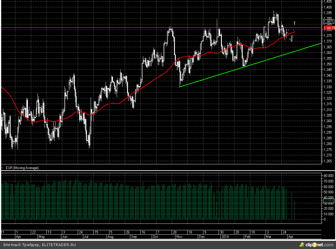 В свою очередь европейская валюта накануне благополучно преодолела сильное сопротивление на отметке 1,38 и вполне может вернуться в район 1,40 уже в ближайшее время. Впрочем, статистика в регионе продолжает постепенно ухудшаться, а риски дефляции увеличивают возможность дополнительного стимулирования региона. Поэтому данный рост может быть недолговечен.