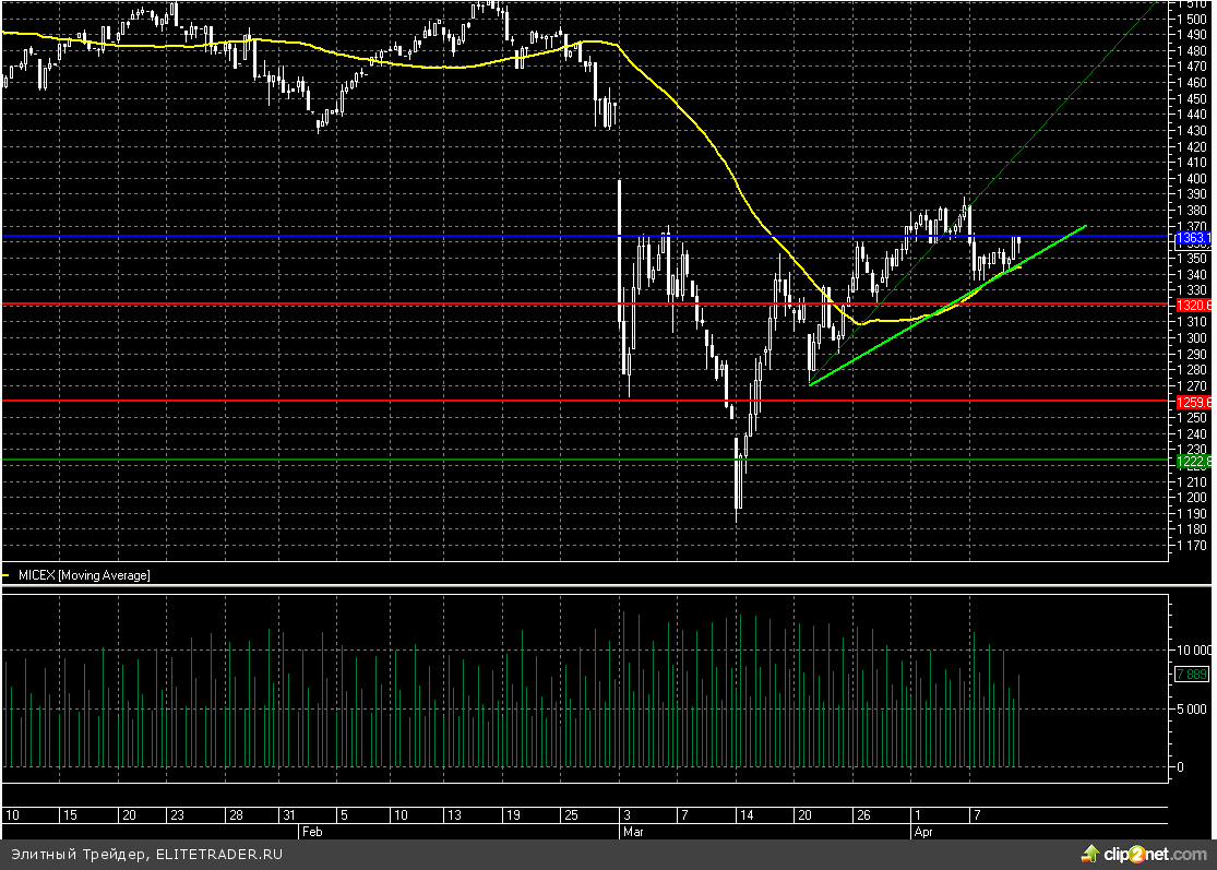 Российский рынок сегодня растет, прибавляя более 0,5% по ММВБ. Впрочем, еще утром подъем был более значительный, но индекс пока так и не смог закрепиться выше 1360, что может существенно ускорить рост.