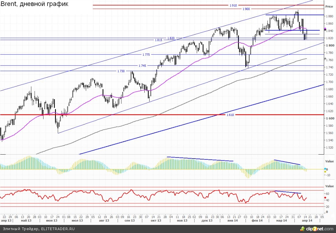 Ближайшая точка опоры сегодня расположена в районе 1805, где сейчас проходит диагональная линия поддержки, проведенная через нижние экстремумы. Промежуточные поддержки расположены на 1780-1775 и 1740. Преодоление 1840-1850 снова откроет дорогу в район 1905-1910.
