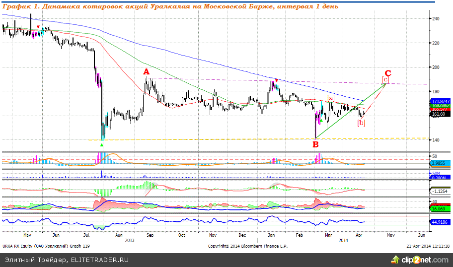 Рекомендуем: покупать акции компании «Уралкалий» по текущей цене (161,00 рубля за акцию) с целью продать на уровне 186,00 рубля за акцию (+15,53%), стоп-приказ на отметке 157,51 рубля за акцию (-2,17%), временная перспектива – 1 месяц.