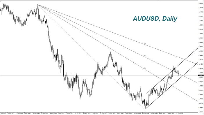 Австралийский доллар (AUDUSD) вчера заметно понизился (это означает его ослабление) после того, как индекс цен потребителей за первый квартал снизился меньше, чем ожидалось. Инвесторы полагают, что это уменьшает вероятность повышения учётной ставки. Сегодня Резервный банк Новой Зеландии собирается увеличить учётную ставку до 3% с 2,75%. Мы не исключаем, что это может оказать краткосрочное позитивное влияние и на новозеландскую и на австралийскую валюты.