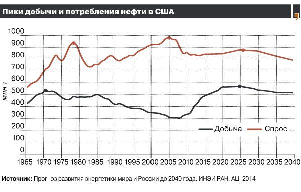 Особое внимание к американской сланцевой добыче важно и потому, что традиционная добыча здесь будет снижаться (в лучшем случае — до 100 млн тонн в год к 2040 году), соответственно, успехи или неуспехи сланцевой добычи в США во многом будут определять собственное производство нефти.