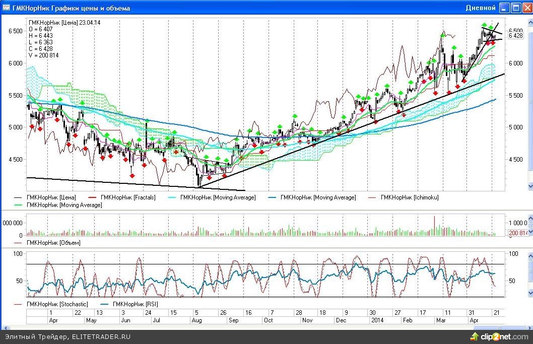 На дневном графике акций ГМК «Норильский Никель» по итогам нескольких сессий стал просматриваться небольшой «треугольник», похожий на «вымпел».
