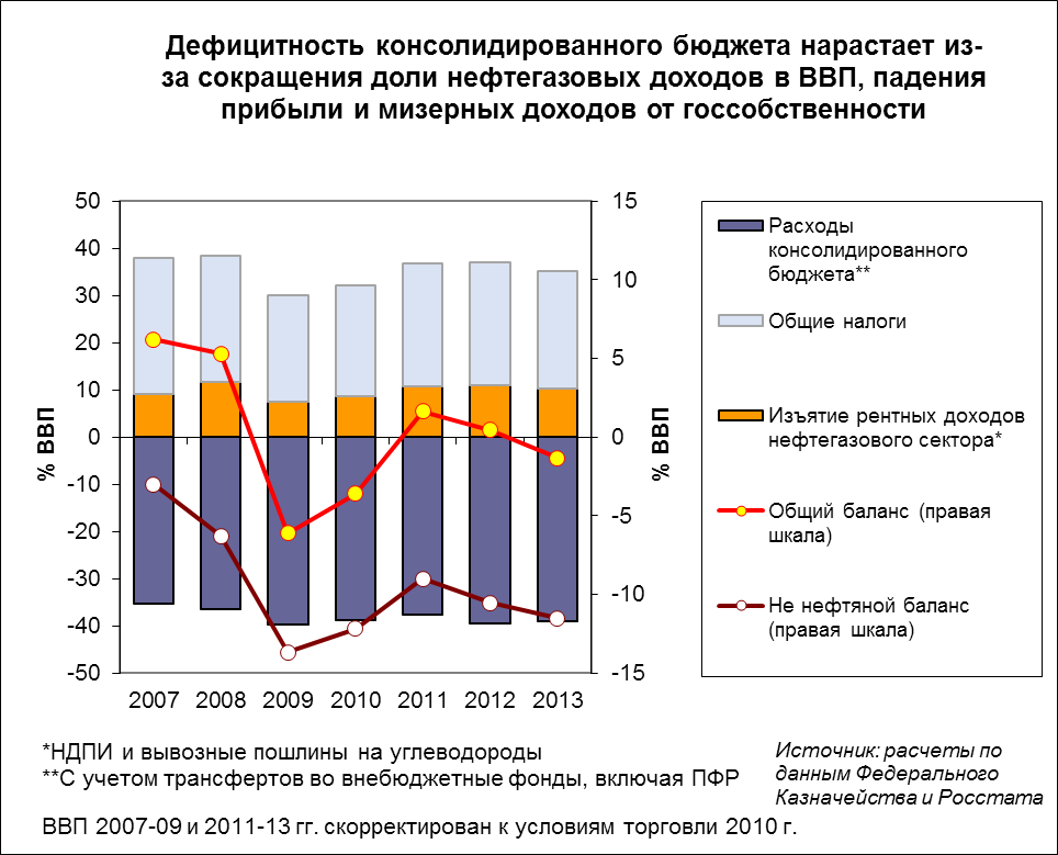 Незадолго до кризиса (в 2007) Россия приняла рекомендованное МВФ правило, ограничивающее (структурный, т.е. с поправкой на состояние цикла) не нефтегазовый дефицит бюджета (как тогда планировалось, 4.7% ВВП, начиная с 2009). С точки зрения исследователей МВФ – это более правильный как краткосрочно, так и в долгосрочном плане регулятор использования нефтегазовых доходов.