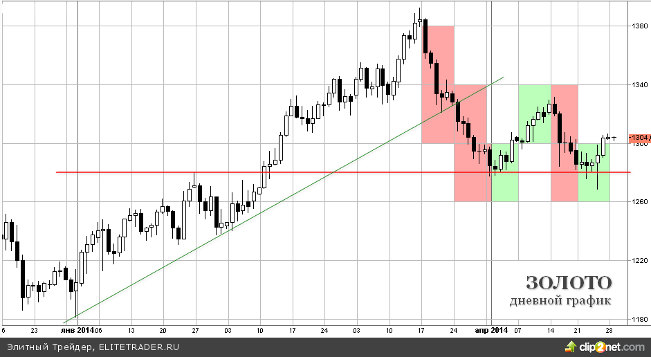 После недельного перерыва, цена фьючерсов на золото снова растет, продолжая тенденцию первой половины апреля. В пятницу котировки металла поднялись почти на 1% на фоне эскалации конфликта между Украиной и Россией и локальной коррекции на фондовых площадках.