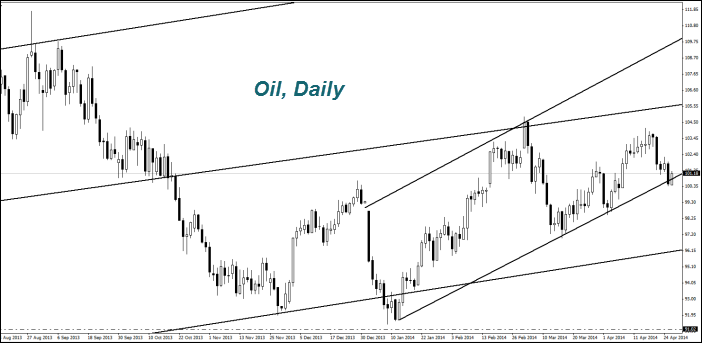 Котировки нефти (Brent Oil) повысились на фоне возможного ввода дополнительных санкций против России (7-е место в мире по запасам нефти). Мы не исключаем дальнейшего удорожания нефти и газа (Natgas). Запасы природного газа в США снизились до минимума за 11 лет.