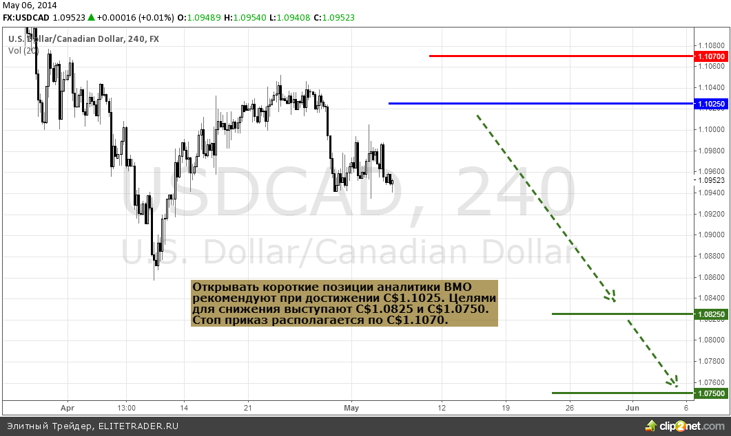 Позиции на продажу целесообразно открывать при достижении цены C$1.1025. Целями для этого движения выступают уровень C$1.0825, а при последующем снижении C$1.0750. Отменой подобного сценария развития торгов послужит укрепление выше отметки C$1.1070.