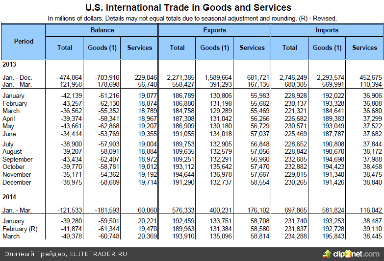 Со стороны макростатистики вчера не было явного позитива. Сальдо торгового баланса США в марте выросло с пересмотренных -$41,87 млрд. до -$40,38 млрд., при прогнозных -$40,3 млрд.