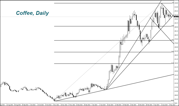 По данным Association of Indonesian Coffee Exporters and Industries, внутреннее потребление кофе (Coffee) в Индонезии в этом году может увеличиться на 33% в течение следующих двух лет из-за роста численности населения и его доходов. К 2016 году внутренний спрос может возрасти до 400 тыс. тонн с ожидаемых в этом году 300 тыс. тонн и 260 тыс. тонн в 2013 году. По нашему мнению, это может не оказать заметного негативного влияния на котировки кофе. Так как одновременно эта Ассоциация повысила прогноз урожая в Индонезии в этом году на 50 тыс. тонн до 700 тыс. тонн. Отметим, что с начала года сорт кофе Робуста, на который приходится 80% производства в стране, подорожал на 28%. Ассоциация ожидает увеличения доли более дешевого и продуктивного сорта Арабика в общем урожае кофе Индонезии с 19% до 25% в течении следующих трёх лет. В мире доля Арабики составляет 59%.