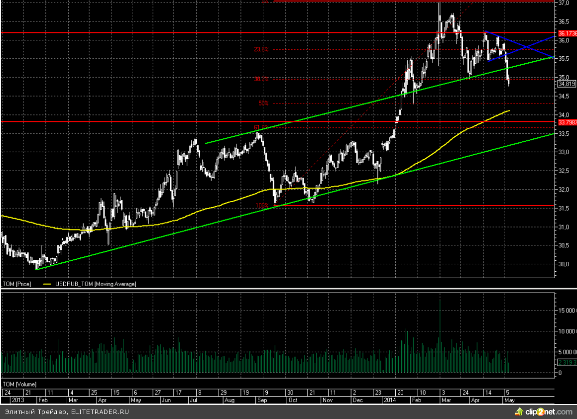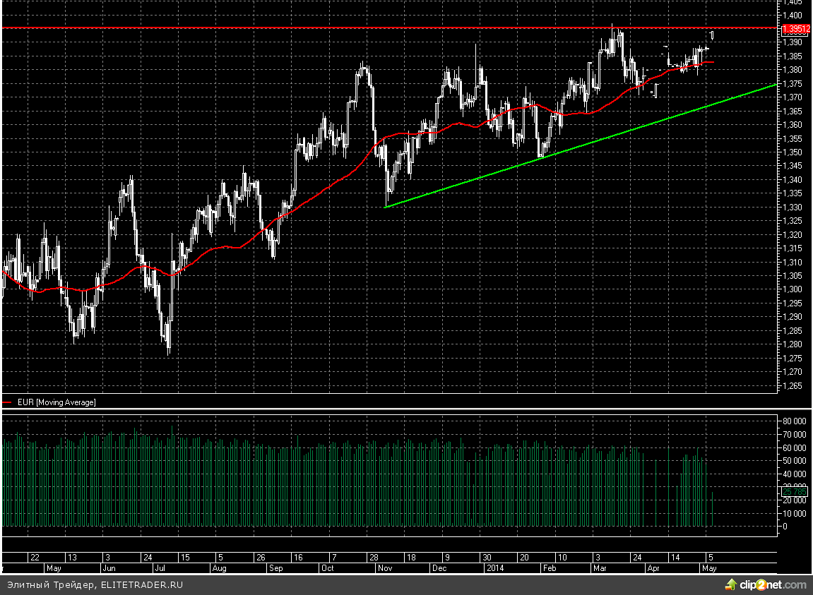 Рубль и евро сегодня снова растут по отношению к американскому доллару. Данная динамика происходит на фоне вчерашних заявлений Владимира Путина, который вселил надежду в скорое снижение напряженности на Украине. В частности президент РФ призвал юго-восток Украины отложить назначенный на 11 мая референдум, а также заявил, что Россия не является одной из сторон в украинском конфликте. Дополнительное давление на доллар оказывают также высказывания главы ФРС Джанет Йеллен, которая заявила, что стимулирующая кредитно-денежная политика в США остается оправданной.