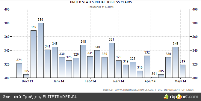 Дополнительным позитивом в ходе текущей торговой сессии стали данные с американского рынка труда. Заявки на пособия по безработице упали за прошедшую неделю до 319 тыс. при средних ожиданиях на уровне 328 тыс.