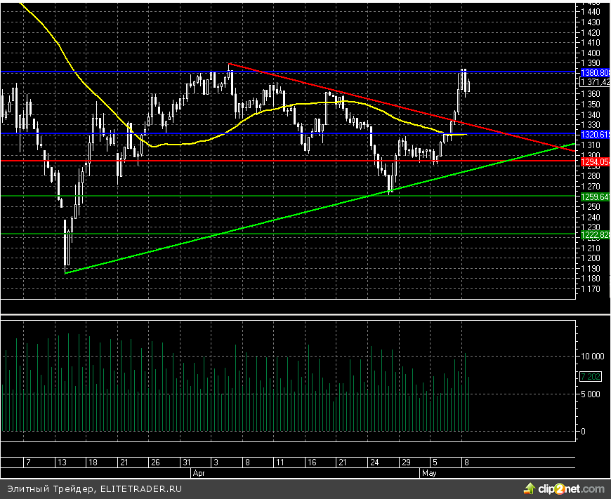 Российский рынок завершил предпраздничную торговую сессию ростом. Индекс ММВБ прибавил 0,58% и закрылся рядом с отметкой 1380, где находится серьезное сопротивление. Пробой данного уровня может ускорить текущую позитивную тенденцию.