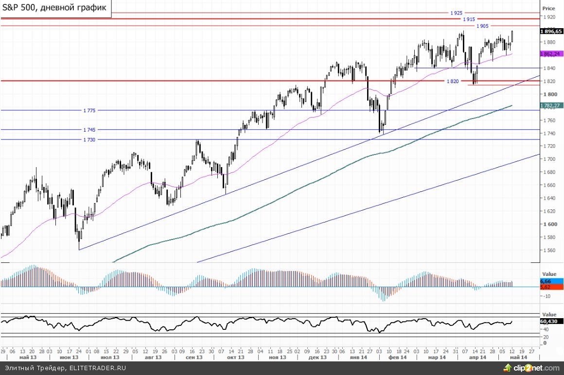 На западных площадках опять царит оптимизм. Американский промышленный индекс DJIA в понедельник обновил свой исторический максимум. В районе all-time high закрывался и индекс широкого рынка SnP 500, вплотную подошедший к круглой отметке 1900. Не сильно отстает и немецкий DAX, снова подтянувшийся к максимальным высотам.