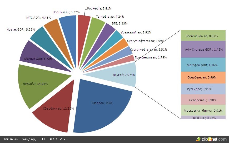 По мнению Александра Костюкова, аналитика ИК «Велес Капитал», доля или часть доли ФСК может быть отдана акциям РусГидро, которые выглядели заметно лучше рынка (+3,6%) с последнего пересмотра индекса.