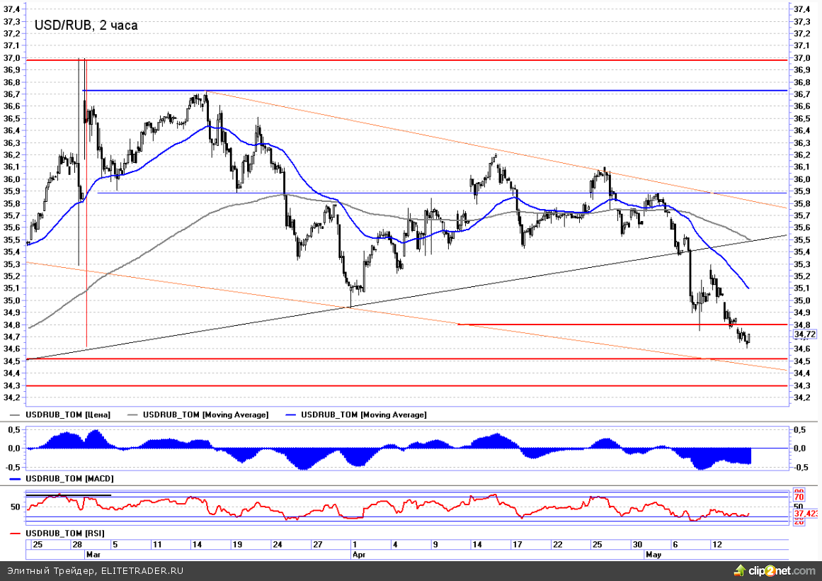 На валютном рынке все идет по плану. Пара доллар/рубль постепенно направляется к обозначенной целевой области в районе 34,30-34,50. На этих рубежах долгосрочный лонг по доллару снова станет привлекательным, так как будет отработан стандартный потенциал коррекции в рамках долгосрочного трендового движения.