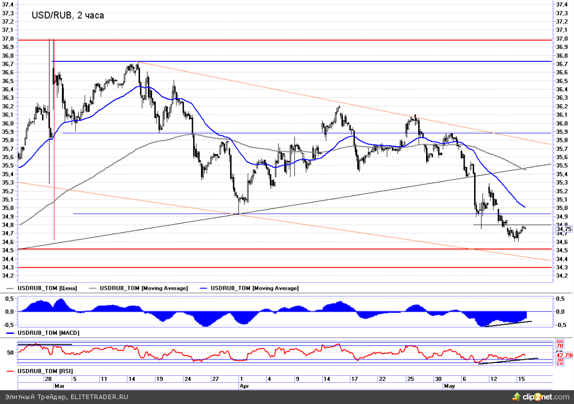 Российский рубль на валютных торгах Московской Биржи вчера преимущественно консолидировался и изменился совсем незначительно. Напомню, что в качестве целевой зоны поддержки по паре USD/RUB выделяется область 34,30-34,50. С этих отметок снова буду рекомендовать покупать валюту. В вопросе выбора приобретения евро или доллара по-прежнему безоговорочно отдаю предпочтение американской валюте.