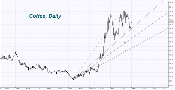 Стоимость кофе (Coffee) выросла после официального снижения прогноза его урожая в Бразилии агентством Conab до 44,57 млн. мешков в нынешнем сезоне. Это на 9% ниже январской оценки. Дополнительным фактором стало уменьшение прогноза урожая кофе в Индонезии от International Coffee Organization в сезоне 2013/2014 до 11,67 млн. мешков с 13,04 млн. в сезоне 2012/2013.