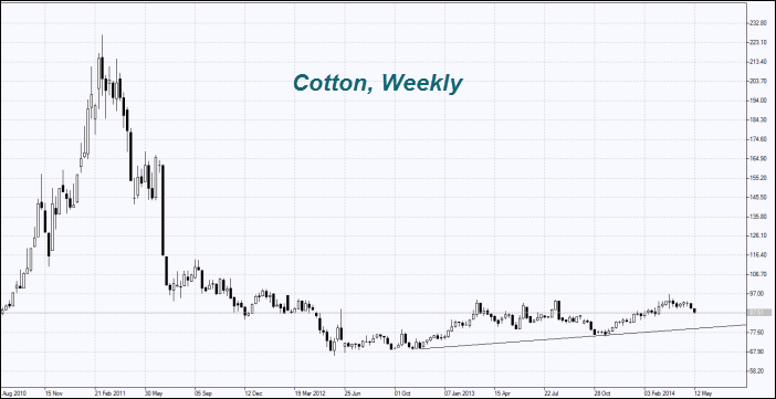 Хлопок (Cotton) дешевеет вторую неделю подряд. Китай, лидер его потребления в мире, сократил импорт хлопкового волокна в апреле на 47,9% по сравнению с апрелем прошлого года — до 224,4 тыс. тонн. Об этом сообщила Китайская ассоциация хлопка. В январе-апреле текущего года сокращение импорта хлопка в Китай составило 45,2% - до 985 тыс. тонн. Это произошло благодаря избытку волокна и его продажам из государственных запасов. По оценке USDA, Китай владеет 60% мировых запасов хлопка или 10 млн. тонн. В апреле из них было продано 306 тыс. тонн.