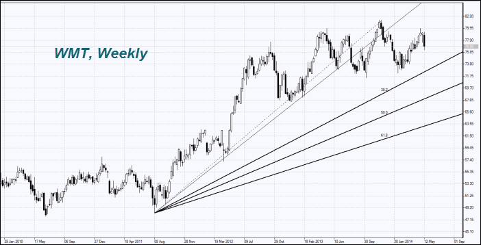 Мы полагаем, что вчерашнему падению котировок способствовали негативные макроэкономические позиции и слабые финансовые результаты крупнейшей в мире американской торговой сети Wal-Mart (WMT).