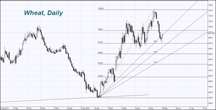 Как мы и предполагали в предыдущем обзоре, котировки пшеницы (Wheat) и других зерновых культур, включая сою (Soyb), продемонстрировали неплохой рост. По данным USDA, на начало недели в США было засеяно пшеницей 49% всех отведённых под неё площадей. Участники рынка ожидали более высокой цифры — 52%. В Северной Дакоте засеяно лишь четверть сельскохозяйственных площадей. Это гораздо ниже среднего уровня за пять лет 55%. Сев кукурузы (Corn) составил 73%, что лишь немного ниже среднего уровня за пять лет 76% и ожиданий участников рынка — 74%. Посевы сои достигли 33% от запланированного уровня против пятилетнего среднего - 38% и прогнозов - 35%. Отметим, что задержка посевной в США происходит из-за недостатка дождей. Дополнительным позитивом для сои стало увеличение её экспорта из США за неделю (по 15 мая) на 64% по сравнению с аналогичной неделей годом ранее.