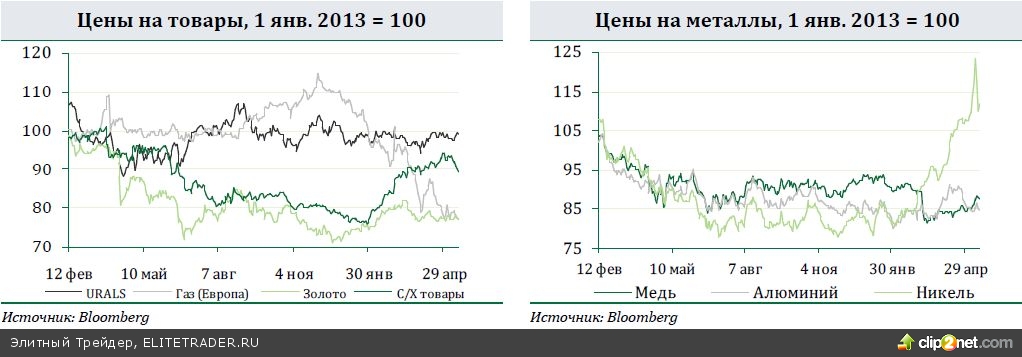 В начале прошлой недели никель продолжил взрывной рост, связанный с опасениями за стабильность поставок металла (см. выпуск НГЭ, 12 мая 2014), однако, уже к концу недели, вместе со снижением напряженности, большая часть образовавшейся прибавки была отыграна обратно. По итогам двух недель рост составил 4%, что для никеля в этом году является чуть ли не нормой. В мае медь идет по схожей траектории: за 2 недели прирост в 2,5%, однако, здесь главные факторы - со стороны выросшего спроса Китая.