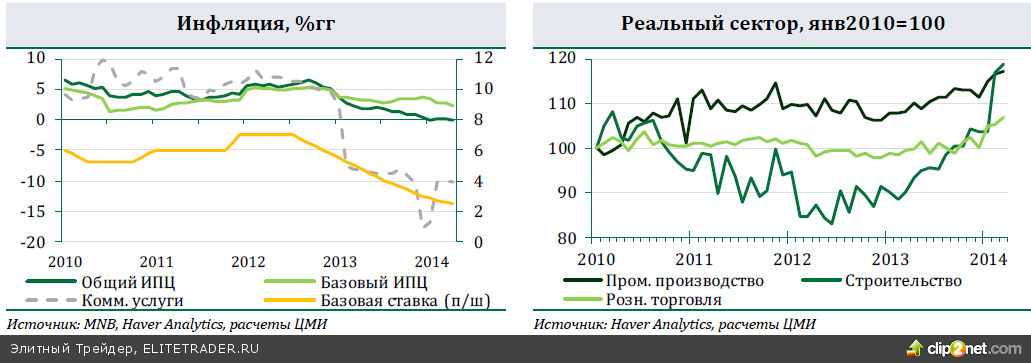 ВОСТОЧНАЯ ЕВРОПА: В Чехии ускоряется рост экономики и замедляется инфляция. ВВП Венгрии вырос на 3,5%гг в первом квартале 2014 года. Макропоказатели в Венгрии подтверждают положительную динамику. В Польше рост ВВП превысил ожидания и достиг в 1 кв. 3,3%гг.