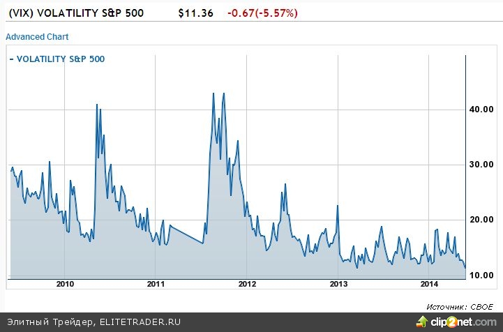 Низкие объемы сопровождаются снижением волатильности на рынке. Индекс страха инвесторов - VIX коснулся в пятницу самого низкого уровня с марта 2013 года.