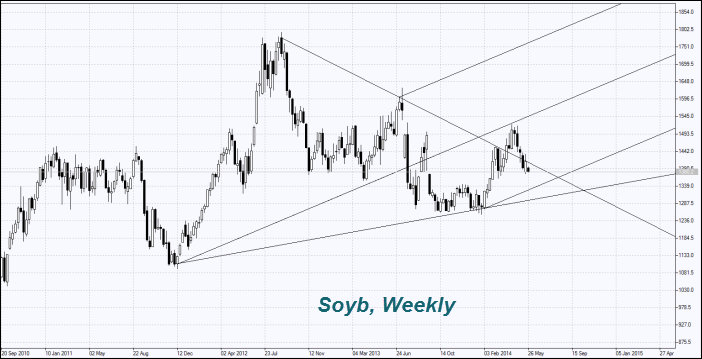 Стоимость сои (SOYB) понизилась на фоне продажи её государственных запасов в Китае. В мае там на внутреннем рынке было продано 763,8 тыс. тонн по цене примерно $670 за тонну. Это гораздо ниже котировок фьючерсов на мировом рынке. Запасы сои старого урожая в Китае оцениваются примерно в 3,8 млн. тонн. Участники рынка уверены, что этот объём не попадёт на мировой рынок и будет использован внутренними потребителями. Из-за этого негативное влияние на стоимость контракта Soyb скорее всего будет ограниченным как процентном, так и во временном выражении. Однако, пока идёт процесс реализации старых запасов, Китай, вероятно, уменьшил импорт сои в мае. На его долю приходится две третьих мировой покупки бобов. В январе-апреле 2014 года китайский импорт вырос на 41,2% по сравнению с аналогичным периодом прошлого года до 21,85 млн. тонн. Это способствовало росту котировок сои на 20%.