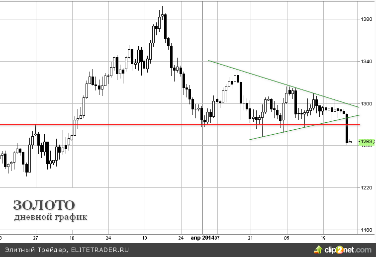 Внешних драйверов на этот раз оказалось достаточно, чтобы продавить техническую поддержку в зоне $1275-1280 за унцию, что повлекло за собой срабатывание «стопов». Закрытие дня состоялось чуть выше отметки $1260 за унцию соответственно, и ничего не мешает спекулянтам продавить цену металла еще ниже, например к отметке $1230 за унцию.