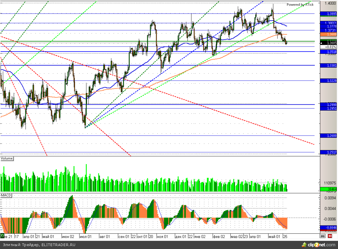 В свою очередь европейская валюта ждет новых драйверов, консолидируясь у значимой поддержки в районе 1,36. Пробой данной отметки может привести к ускорению снижения с ближайшей целью в районе 1,345.